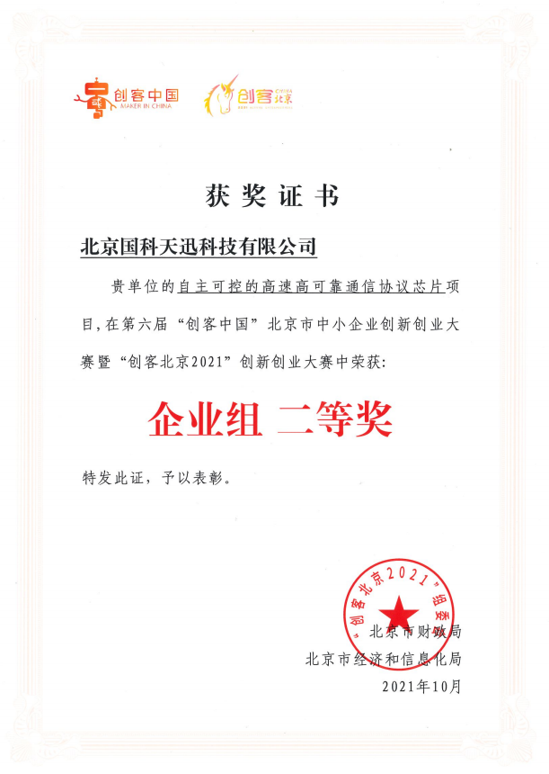 大赛自6月启动以来,受到广大中小企业和创客团队高度关注,吸引了全市近5千个项目报名。国科开云官方端网站登录入口-开云(中国)参赛的“自主可控的高速高可靠通信协议芯片”项目,经初赛、复赛两个月激烈角逐,在众多项目中表现抢眼,成功入围新一代信息技术领域决赛,经路演获企业组百强,后与百家企业共同比拼及专家组评审后最终获此殊荣。